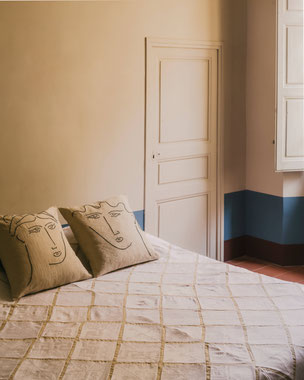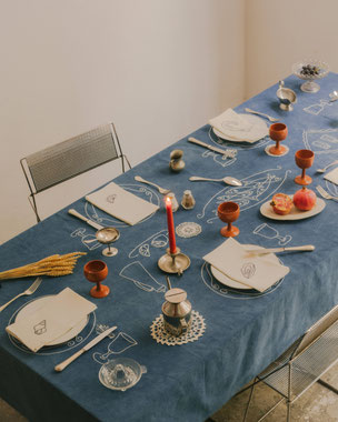 Die in Marseille ansässige Künstlerin Sarah Espeute schöpft tief aus ihren südfranzösischen Wurzeln und verwandelt Alltagsgegenstände in berührende, verspielte und stimmungsvolle Stücke. Ihre Arbeiten entführen in lichtdurchflutete Szenerien der Provence – zu geselligen Tafeln, bei denen selbst das bunt zusammengewürfelte Geschirr eine Geschichte erzählt. Oder in Traumwelten, in denen mit Seele bestickte Vorhänge, Kissen und Bettbezüge uns sanft in den Schlaf begleiten. Die achtsame Welt der Sarah Espeute ist eine Ode an das Handwerk und an hochwertige Stoffe – zwar mit einem Augenzwinkern, aber immer mit viel Tiefe und Respekt vor dem Material. Oeuvres Sensibles von Sarah Espeute ist poetische Textilkunst für jede Lebenslage.